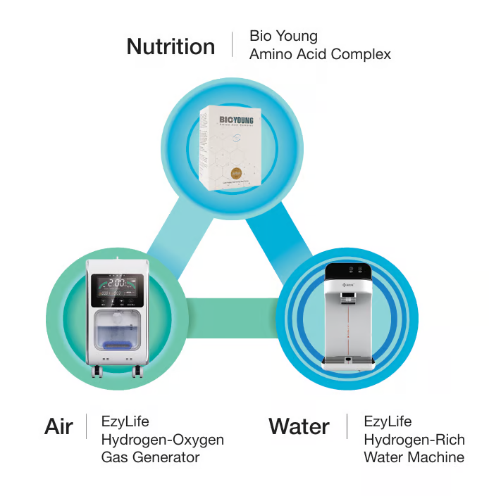 Adhering to Bio Young’s core values and commitment to product safety and high quality, the company conducted a thorough search among numerous manufacturers. Ultimately, Bio Young selected “EzyLife” medical-grade “hydrogen-oxygen” product. After in-depth research and discussions, Bio Young decided to introduce this medical-grade device to Malaysian households to promote widespread health benefits.